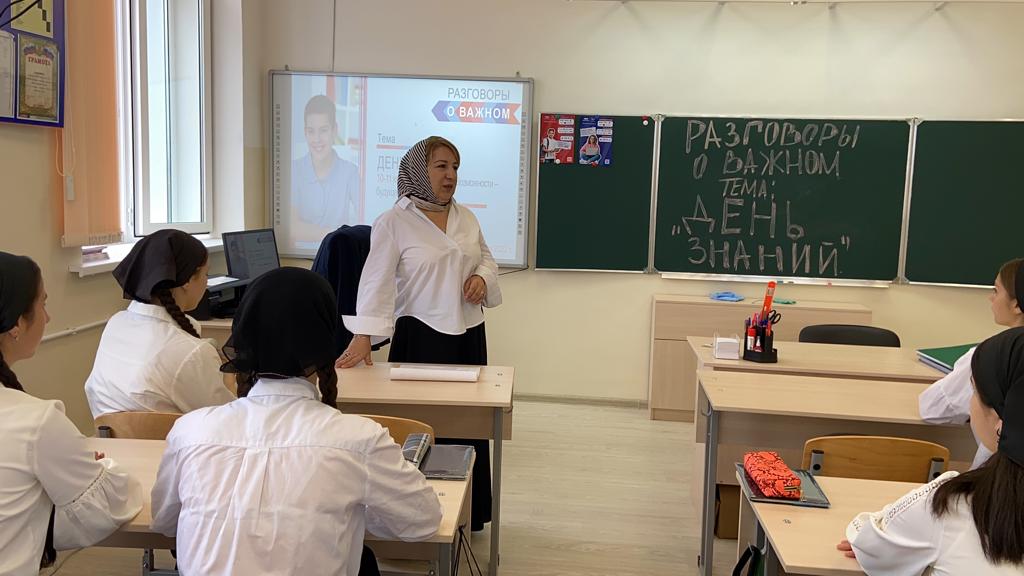 Сегодня директор МБОУ "Брагунская СШ", Разита Хусейновна провела классный час в десятом классе на тему: "День знаний"