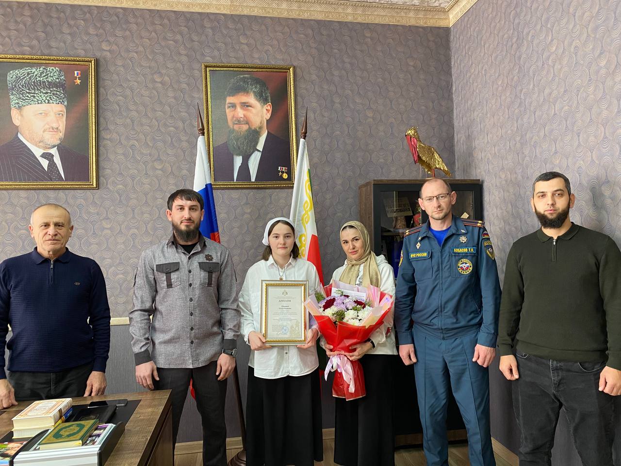 15.01.2024В соответствии с распоряжением МЧС России от 28.06.2023 Nº 587 «О проведении конкурса патриотической и культурно-досуговой деятельности «Великая Победа - гордость поколений», воспитанница МБУ ДО «Гудермесский ДЮЦ» Ташаева Юлдуз заняла 3 место во Всероссийском конкурсе рисунков среди 86 регионов России. Заместитель начальника Главного Управления МЧС России по Чеченской Республике Албасов Тимур Исмаилович вручил диплом от Министра РФ по делам гражданской обороны, чрезвычайным ситуациям и ликвидации последствий стихийных бедствий генерал-лейтенант А. В. Куренков. Дала т1аьхье беркате йойла!