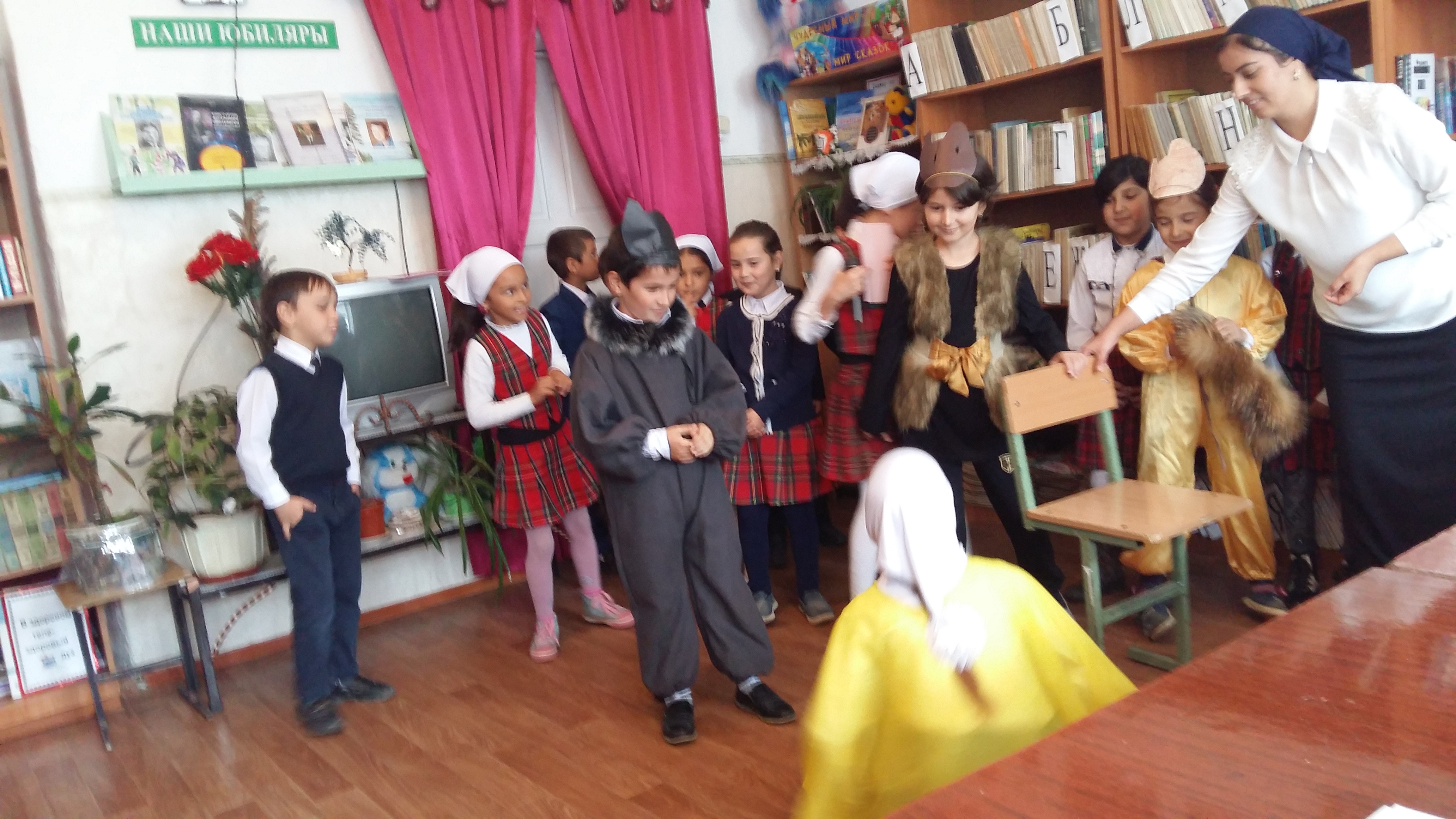 Они веселые, счастливые приходили в библиотеку со своими классными руководителями: Мамаевой Умукурсин Мавладиновной, Мамаевой Кистаман Умарпашаевной, Юсуповой Камисой Исраиловной, Хункермурзаевой Хадижат Пахурдиновной. Читали стихи, пели песни, знакомились с библиотекой. Детей заинтересовал уголок сказок: «Чудный мир – мир сказок».