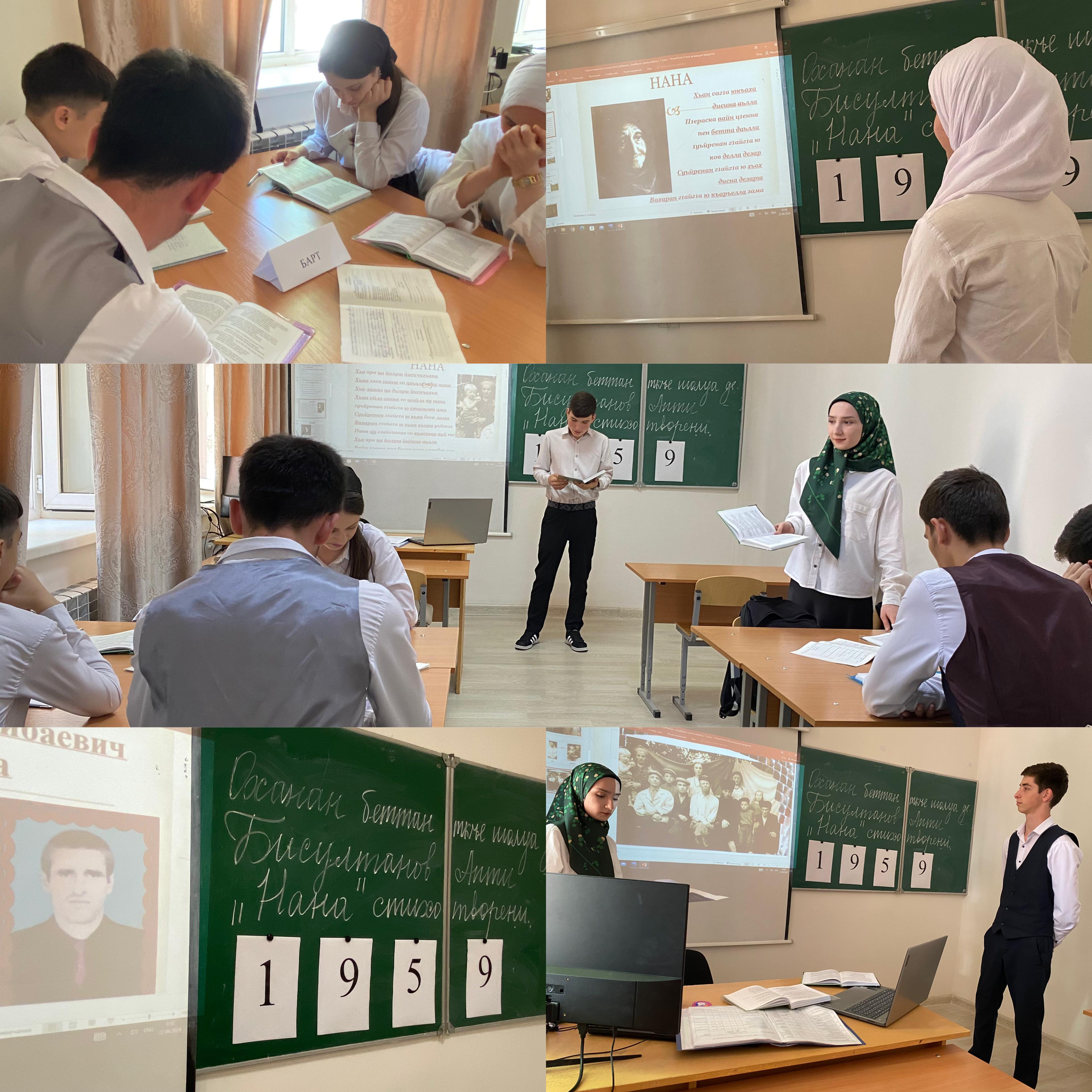 22.04.2024Бисултанов Аптин «Нана» стихотворенин лерина нохчийн литературин хьехарсахьт д1адаьхьира итталг1ачу классехь оханан беттан ткъе шолг1ачу дийнахь.